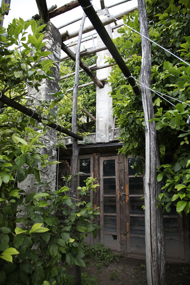 Like in Gargnano, pillars of old greenhouses line the surrounding hillsides, resembling old temple ruins. Giuseppe has jazzed up his lemon garden with old wooden shutters and glass frames. The water wheel and malora stream contribute to the dreamy atmosphere.