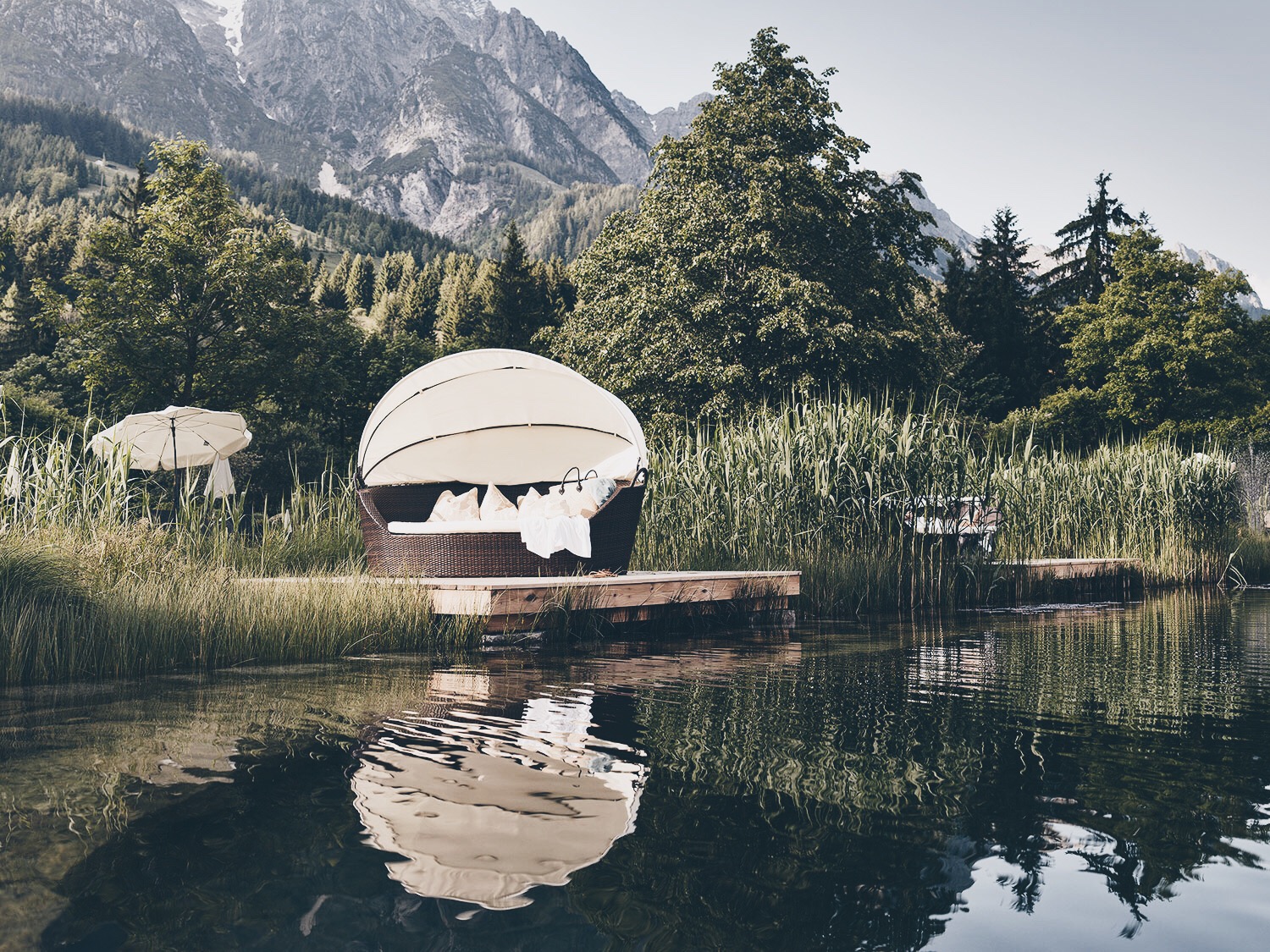 Am Fuße der Leoganger Steinberge verspricht das familiengeführte Naturhotel Forsthofgut einen Urlaub der besonderen Art. Naturliebhaber erkunden das hoteleigene Wildgehege oder genießen die vielen idyllischen Spazierwege in der Urlaubsregion Leogang Saalfelden. Wellness Liebhaber entspannen in Europas ersten WaldSPA und erfreuen sich am wunderschönen Bergpanorama. In der hoteleigenen Gartenanlage gibt es einen Bio-Badesee mit Liegeinseln im Schilf.
