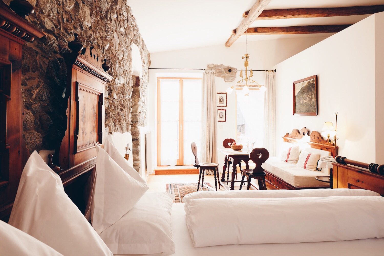 Everywhere you look and feel – everywhere is history. Is quality. Is care. Is lifeblood. Is soul. Starting with the original Merano furniture to paintings to books, lamps, mirrors and crockery.